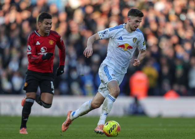 Anton Stach of Leeds United in action during the Premier League match Leeds United vs Manchester United at Elland Road, Leeds, United Kingdom, 4th January 2026, Credit:Richard Bierton/News Images / Avalon
