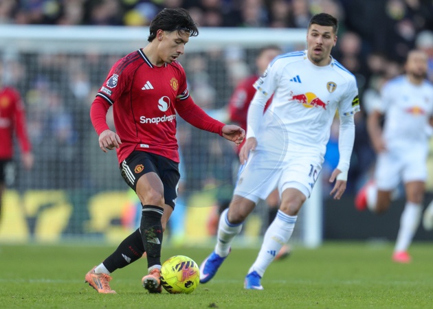 Lisandro Martinez of Manchester United passes the ball during the Premier League match Leeds United vs Manchester United at Elland Road, Leeds, United Kingdom, 4th January 2026, Credit:Richard Bierton/News Images / Avalon