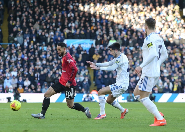 Matheus Cunha of Manchester United in action during the Premier League match Leeds United vs Manchester United at Elland Road, Leeds, United Kingdom, 4th January 2026, Credit:Richard Bierton/News Images / Avalon