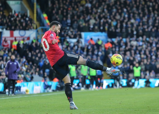 Matheus Cunha of Manchester United clears the ball upfield during the Premier League match Leeds United vs Manchester United at Elland Road, Leeds, United Kingdom, 4th January 2026, Credit:Richard Bierton/News Images / Avalon