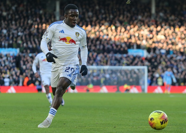 Wilfried Gnonto of Leeds United in action during the Premier League match Leeds United vs Manchester United at Elland Road, Leeds, United Kingdom, 4th January 2026, Credit:Richard Bierton/News Images / Avalon