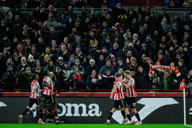Yehor Yarmolyuk of Brentford celebrates his goal to make it 3-0 during the Premier League match Brentford vs Sunderland at The Gtech Community Stadium, London, United Kingdom, 7th January 2026, Credit:Maynard Manyowa/News Images / Avalon