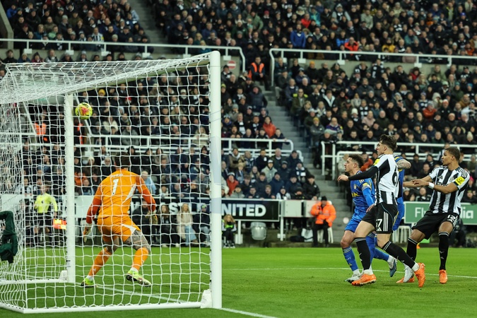 Lewis Miley of Newcastle Untied shot on goal hits the post and rebounds back out during the Premier League match Newcastle United vs Leeds United at St. James's Park, Newcastle, United Kingdom, 7th January 2026, Credit:Mark Cosgrove/News Images / Avalon