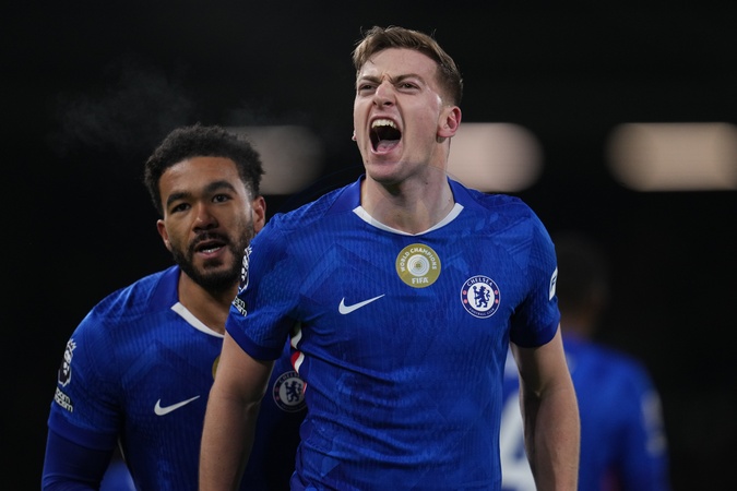 Liam Delap of Chelsea celebrates goal during the Premier League match Fulham vs Chelsea at Craven Cottage, London, United Kingdom, 7th January 2026, Credit:Harvey Murphy/News Images / Avalon