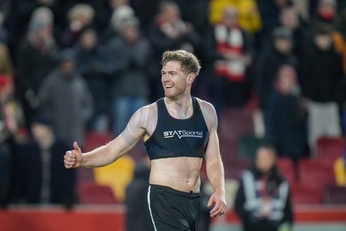 Nathan Collins of Brentford applauds the fans after the final whistle during the Premier League match Brentford vs Sunderland at The Gtech Community Stadium, London, United Kingdom, 7th January 2026, Credit:Maynard Manyowa/News Images / Avalon