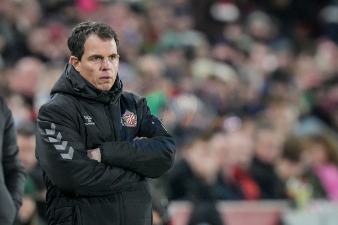 Regis Le Bris manager of Sunderland looks on during the Premier League match Brentford vs Sunderland at The Gtech Community Stadium, London, United Kingdom, 7th January 2026, Credit:Maynard Manyowa/News Images / Avalon
