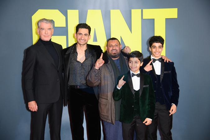 (L-R) - Pierce Brosnan, Amir El-Masry, Naseem Hamed aka Prince Naseem, Ghaith Saleh and Ali Saleh attends The "Giant" UK Gala Screening at Picturehouse Central, London, England, UK on Wednesday 7 January, 2026., Credit:Justin Ng / Avalon