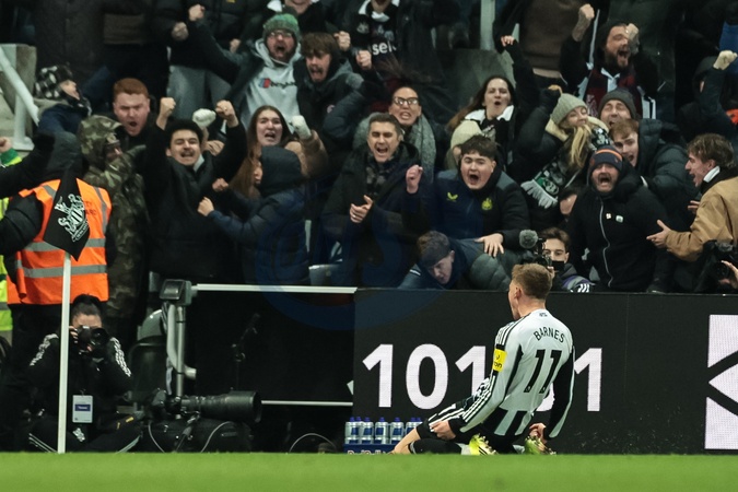 Harvey Barnes of Newcastle Untied celebrates his goal to make it 4-3 during the Premier League match Newcastle United vs Leeds United at St. James's Park, Newcastle, United Kingdom, 7th January 2026, Credit:Mark Cosgrove/News Images / Avalon