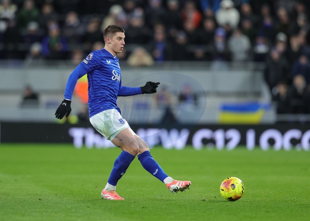 Vitaliy Mykolenko of Everton passes the ball during the Premier League match Everton vs Wolverhampton Wanderers at Hill Dickinson Stadium, Liverpool, United Kingdom, 7th January 2026, Credit:Richard Bierton/News Images / Avalon