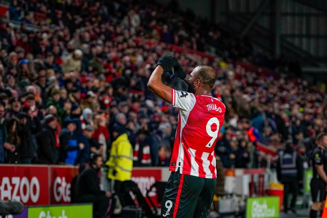 Igor Thiago of Brentford celebrates his goal to make it 1-0 during the Premier League match Brentford vs Sunderland at The Gtech Community Stadium, London, United Kingdom, 7th January 2026, Credit:Maynard Manyowa/News Images / Avalon