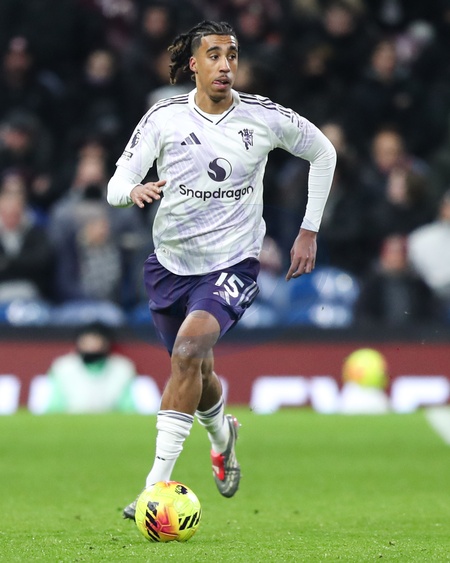 Leny Yoro of Manchester United with ball at his feet during the Premier League match Burnley vs Manchester United at Turf Moor, Burnley, United Kingdom, 7th January 2026, Credit:Jorge Horsted/News Images / Avalon