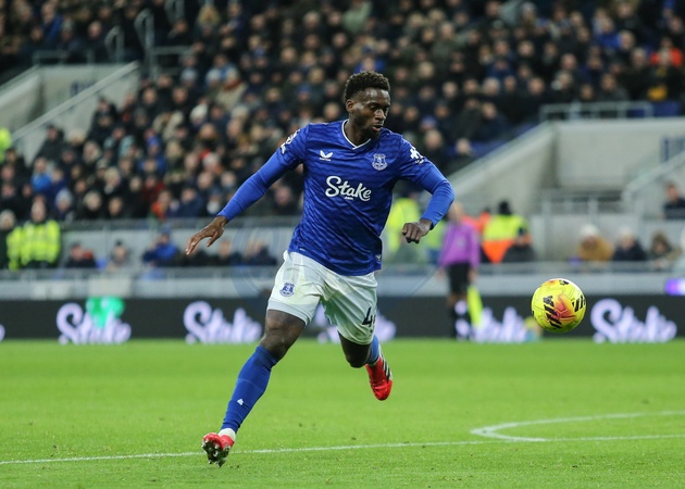 Tim Iroegbunam of Everton in action during the Premier League match Everton vs Wolverhampton Wanderers at Hill Dickinson Stadium, Liverpool, United Kingdom, 7th January 2026, Credit:Richard Bierton/News Images / Avalon