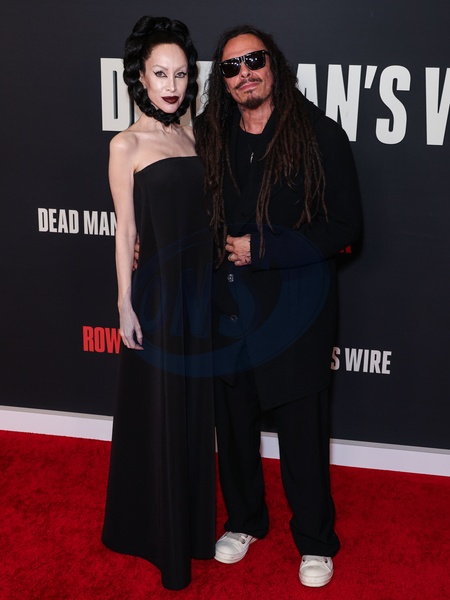 LOS ANGELES, CALIFORNIA, USA - JANUARY 07: Evis Xheneti Shaffer and husband James Shaffer of American nu metal band Korn arrive at the Los Angeles Premiere Of Row K Entertainment's 'Dead Man's Wire' held at AMC The Grove 14 on January 7, 2026 in Los Angeles, California, United States., Credit:Xavier Collin / Avalon