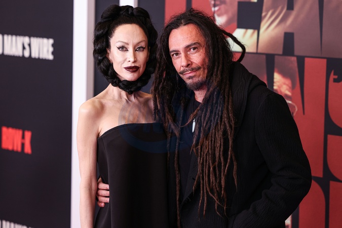 LOS ANGELES, CALIFORNIA, USA - JANUARY 07: Evis Xheneti Shaffer and husband James Shaffer of American nu metal band Korn arrive at the Los Angeles Premiere Of Row K Entertainment's 'Dead Man's Wire' held at AMC The Grove 14 on January 7, 2026 in Los Angeles, California, United States., Credit:Xavier Collin / Avalon