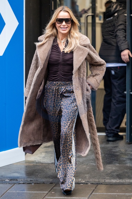 Amanda Holden seen leaving Global Studios, London 9 January 2026 wearing Adidas Originals Wide Leg Satin Joggers, Credit:Robin Pope / Avalon
