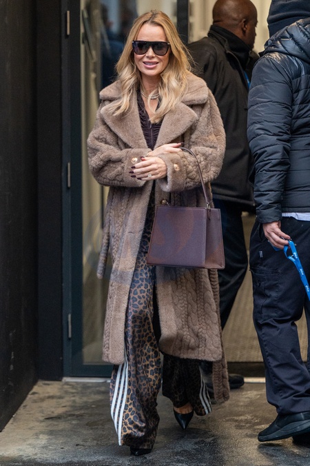 Amanda Holden seen leaving Global Studios, London 9 January 2026 wearing Adidas Originals Wide Leg Satin Joggers, Credit:Robin Pope / Avalon
