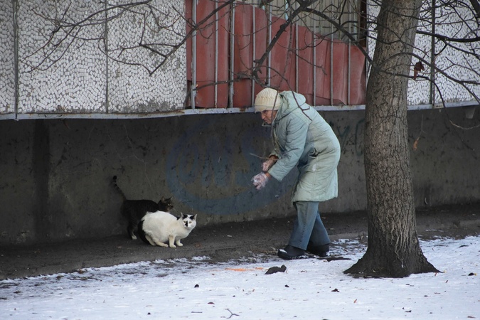 Stray animals in Kyiv in winter