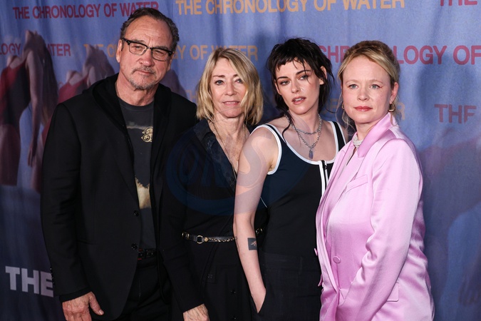 HISTORIC FILIPINOTOWN, LOS ANGELES, CALIFORNIA, USA - JANUARY 08: American actor, comedian, singer, musician, producer, writer, and director Jim Belushi, American musician, singer and songwriter Kim Gordon, American actress and director Kristen Stewart wearing Chanel and American actress and director Thora Birch arrive at the Los Angeles Premiere Of The Forge's 'The Chronology Of Water' held at 2220 Arts + Archives on January 8, 2026 in Historic Filipinotown, Los Angeles, California, United States., Credit:Xavier Collin / Avalon