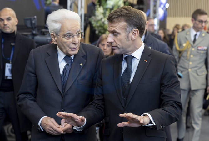 President of the Republic Sergio Mattarella with French President Emmanuel Macron at the official ceremony in memory of the victims of the Crans-Montana fire. Martigny, Svivvera 09 January 2026, Credit:Paul Giandotti / Avalon