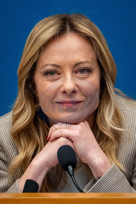 Italian Prime Minister Giorgia Meloni attends the annual press conference at the Chamber of Deputies in Rome, Italy, on 09 January 2026.