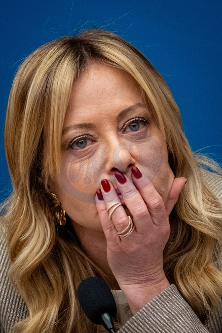 Italian Prime Minister Giorgia Meloni attends the annual press conference at the Chamber of Deputies in Rome, Italy, on 09 January 2026.