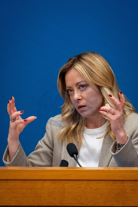 Italian Prime Minister Giorgia Meloni attends the annual press conference at the Chamber of Deputies in Rome, Italy, on 09 January 2026.