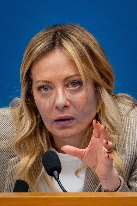 Italian Prime Minister Giorgia Meloni attends the annual press conference at the Chamber of Deputies in Rome, Italy, on 09 January 2026.