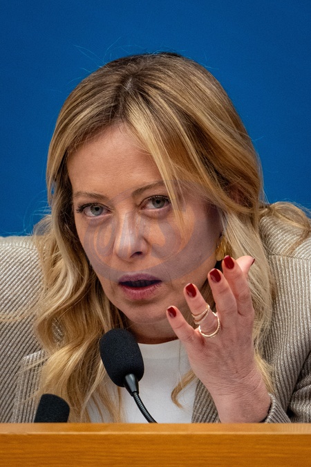 Italian Prime Minister Giorgia Meloni attends the annual press conference at the Chamber of Deputies in Rome, Italy, on 09 January 2026.