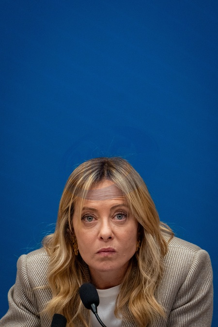 Italian Prime Minister Giorgia Meloni attends the annual press conference at the Chamber of Deputies in Rome, Italy, on 09 January 2026.