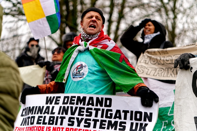 Friday 9th January 2025 Filton24 supporters gather outside Woolwich Crown Court as the first trial of the Filton24 case came to a close. Laleh Khalili Iranian American Professor of Gulf Studies spoke and Anna lead singer from HAWXX performed., Credit:Aldo Ciarrocchi / Avalon