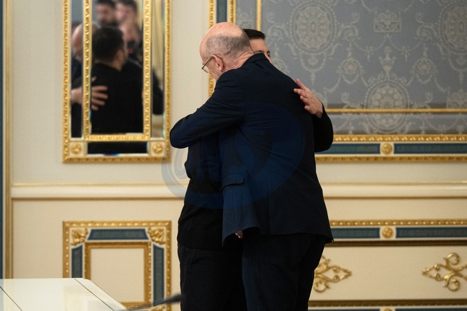 President of Ukraine Volodymyr Zelenskyy (L) and UK Secretary of State for Defence John Healey embrace each other at the start of their meeting in Kyiv, Ukraine, on January 9, 2026., Credit:Danylo Antoniuk / Avalon