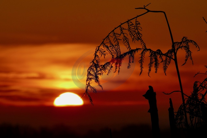 The days sun rises on a cold and frosty morning in the countryside., Credit:Geoffrey Swaine / Avalon