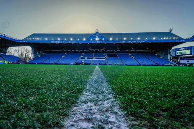 A ground shot showing the pitch and the main stand during the Emirates FA Cup Third Round match Sheffield Wednesday vs Brentford at Hillsborough, Sheffield, United Kingdom, 10th January 2026, Credit:Maynard Manyowa/News Images / Avalon