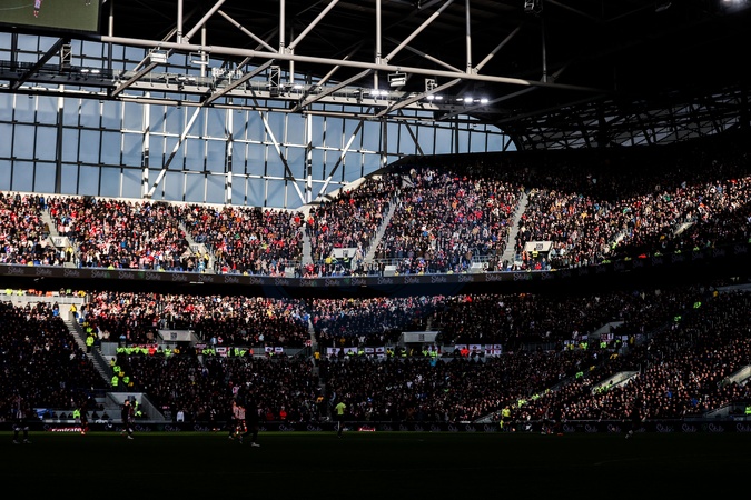 Sunderland fans in the away end as their team leads 0-1 in the 70th minute during the Emirates FA Cup Third Round match Everton vs Sunderland at Hill Dickinson Stadium, Liverpool, United Kingdom, 10th January 2026, Credit:Ae Cosgrove/News Images / Avalon