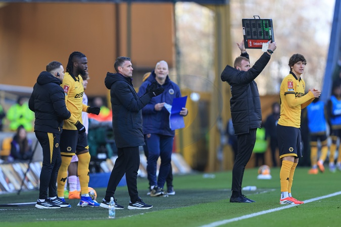Wolverhampton makes a couple of substitutes during the Emirates FA Cup Third Round match Wolverhampton Wanderers vs Shrewsbury Town at Molineux, Wolverhampton, United Kingdom, 10th January 2026, Credit:Euan Manning/News Images / Avalon