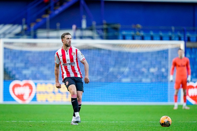 Jordan Henderson of Brentford passes the ball during the Emirates FA Cup Third Round match Sheffield Wednesday vs Brentford at Hillsborough, Sheffield, United Kingdom, 10th January 2026, Credit:Maynard Manyowa/News Images / Avalon