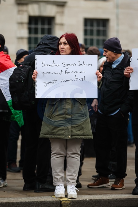 Protest against Syrian attacks on Kurds in Aleppo outside Downing Street in London, UK, on 10 January 2026