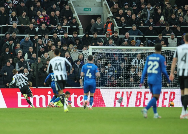 Harvey Barnes of Newcastle United scores to make it 1-0 during the Emirates FA Cup Third Round match Newcastle United vs Bournemouth at St. James's Park, Newcastle, United Kingdom, 10th January 2026, Credit:Richard Bierton/News Images / Avalon