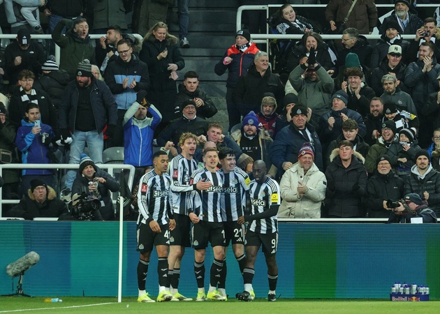 Harvey Barnes of Newcastle United celebrates his goal to make it 1-0 during the Emirates FA Cup Third Round match Newcastle United vs Bournemouth at St. James's Park, Newcastle, United Kingdom, 10th January 2026, Credit:Richard Bierton/News Images / Avalon