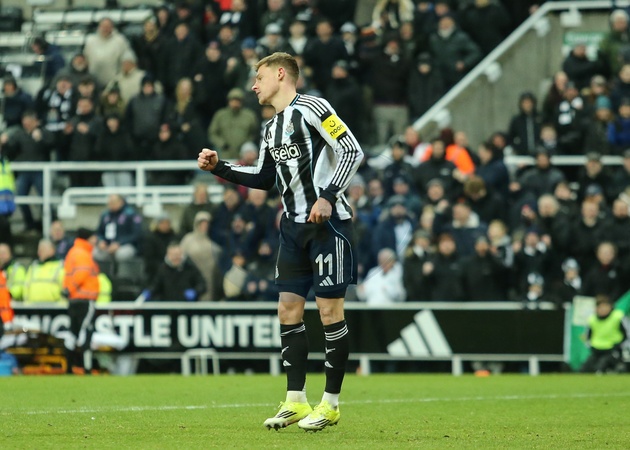 Harvey Barnes of Newcastle United celebrates scoring his penalty in the shootout during the Emirates FA Cup Third Round match Newcastle United vs Bournemouth at St. James's Park, Newcastle, United Kingdom, 10th January 2026, Credit:Richard Bierton/News Images / Avalon
