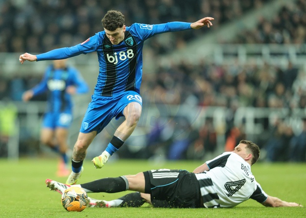 Sven Botman of Newcastle United slides in on Álex Jimenez of Bournemouth during the Emirates FA Cup Third Round match Newcastle United vs Bournemouth at St. James's Park, Newcastle, United Kingdom, 10th January 2026, Credit:Richard Bierton/News Images / Avalon