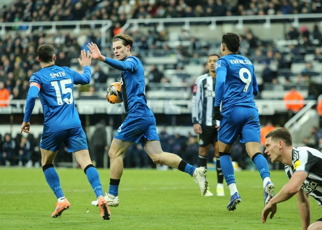 Alex Scott of Bournemouth celebrates his goal to make it 1-1 during the Emirates FA Cup Third Round match Newcastle United vs Bournemouth at St. James's Park, Newcastle, United Kingdom, 10th January 2026, Credit:Richard Bierton/News Images / Avalon