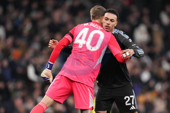 Marco Bizot of Aston Villa and Morgan Rogers of Aston Villa ahead of the Emirates FA Cup Third Round match Tottenham Hotspur vs Aston Villa at Tottenham Hotspur Stadium, London, United Kingdom, 10th January 2026, Credit:Harvey Murphy/News Images / Avalon