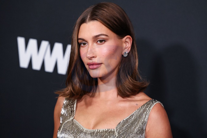 SANTA MONICA, LOS ANGELES, CALIFORNIA, USA - JANUARY 09: American model, entrepreneur, and television personality Hailey Baldwin Bieber wearing an Armani dress arrives at the 2026 2nd Annual WWD (Women's Wear Daily) Style Awards, Golden Globes presented by Amazon Beauty, Donna Karan New York, Glamsquad, IHG Hotels and Resorts, and Moet and Chandon held at the Regent Santa Monica Beach on January 9, 2025 in Santa Monica, Los Angeles, California, United States., Credit:Xavier Collin / Avalon