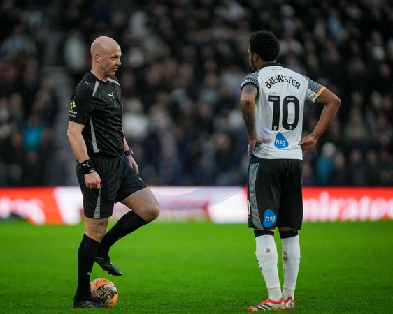 Referee Anthony Taylor speaks to Rhian Brewster of Derby County during the Emirates FA Cup Third Round match Derby County vs Leeds United at Pride Park Stadium, Derby, United Kingdom, 11th January 2026, Credit:Maynard Manyowa/News Images / Avalon