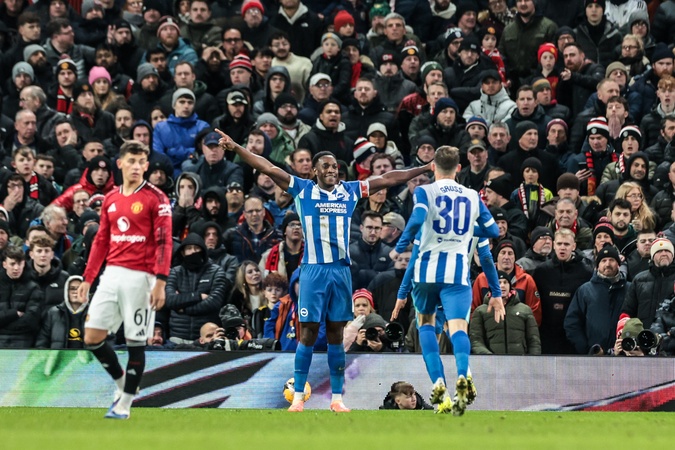 Danny Welbeck of Brighton & Hove Albion celebrates his goal to make it 0-2 during the Emirates FA Cup Third Round match Manchester United vs Brighton and Hove Albion at Old Trafford, Manchester, United Kingdom, 11th January 2026, Credit:Mark Cosgrove/News Images / Avalon