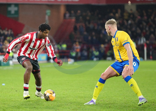 Andre Brooks of Sheffield United in action during the Emirates FA Cup Third Round match Sheffield United vs Mansfield Town at Bramall Lane, Sheffield, United Kingdom, 11th January 2026, Credit:Richard Bierton/News Images / Avalon