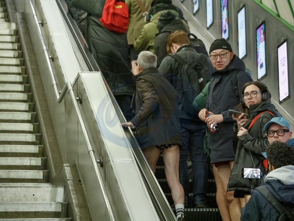 EDITORIAL USE ONLY' The annual No Trousers Tube Ride sees passengers in underwear travel across the London Underground. The event started in London in2009. It was inspired by New York's No Pants Subway Ride. which began in 2002. The event devides opinions on social media with most people seeing it as harmless fun, London, UK, 11 January 2026, Credit:Alex Day / Avalon