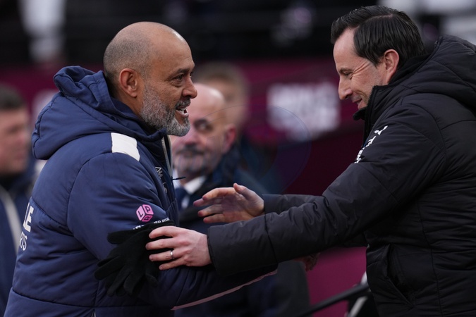 Nuno Espirito Santo manager of West Ham United and Julien Stephan manager of Queens Park Rangers during the Emirates FA Cup Third Round match West Ham United vs Queens Park Rangers at London Stadium, London, United Kingdom, 11th January 2026, Credit:Harvey Murphy/News Images / Avalon