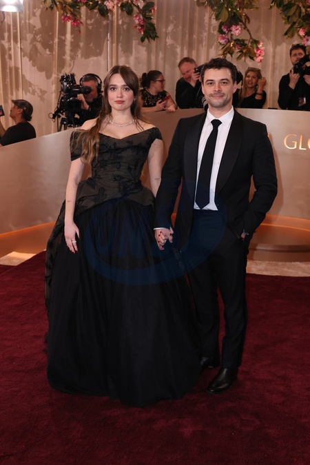 Aimee Lou Wood and Adam Long at the 83rd Annual Golden Globe Awards held at The Beverly Hilton Hotel on January 11, 2026 in Beverly Hills, Los Angeles, California, United States., Credit:Xavier Collin / Avalon